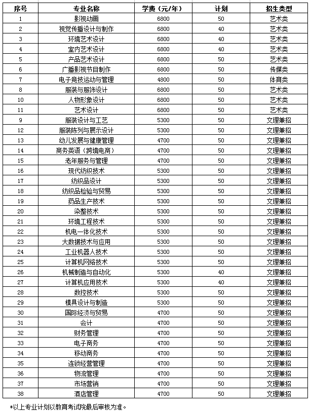 2019年提前招生拟招生专业