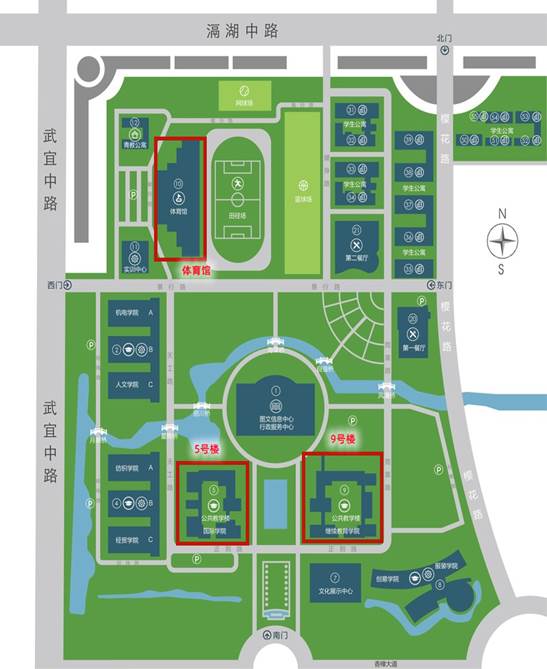(1)考生须至少提前30分钟到学校候考,从学校西门、南门或北门均可进入,家长送考车辆可按照保安引导,将车辆停放在校内道路两侧停车位或停车场内。进校后,考生根据准考证上的考场信息,对照学校张贴指示引导牌、考场分布图,到考场所在9号或5号教学楼外等候;
