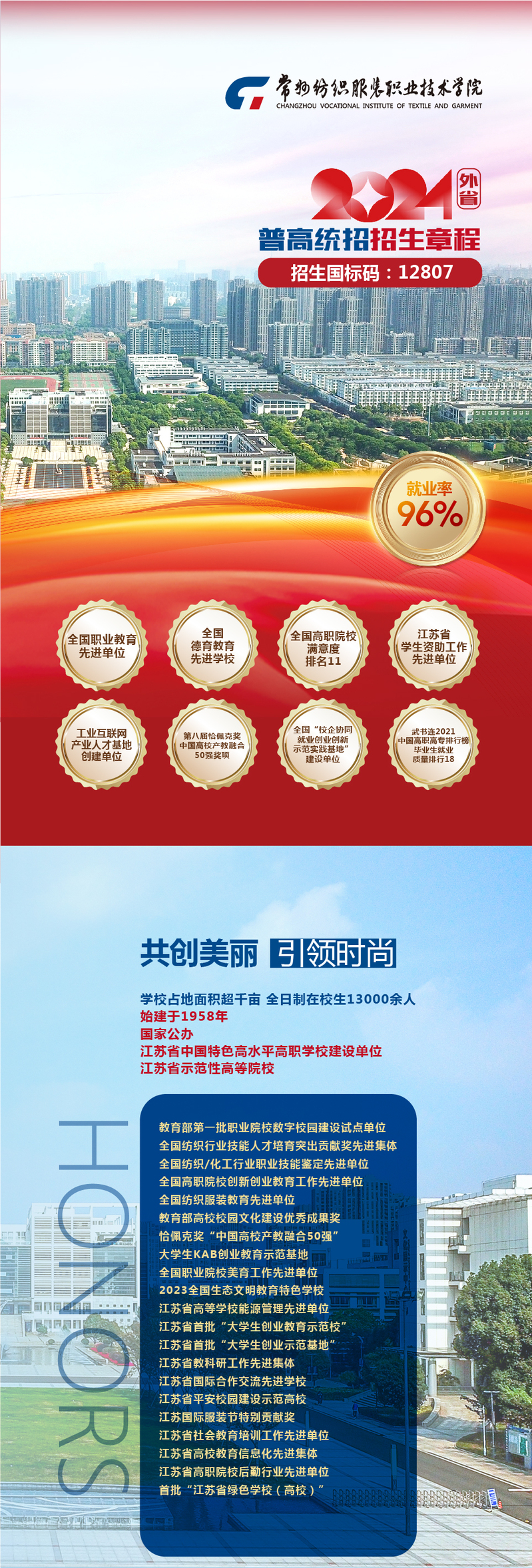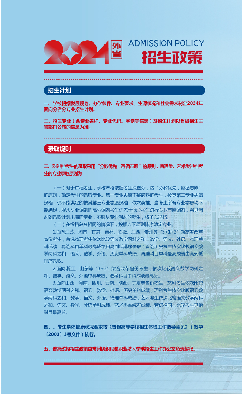 权威发布 | 常州纺织服装职业技术学院2024年外省普高统招招生简章